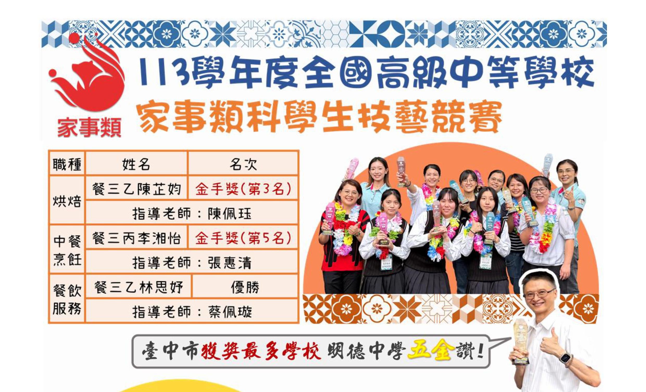 賀 本科參加第51屆全國技能競賽 榮獲2金及第四名