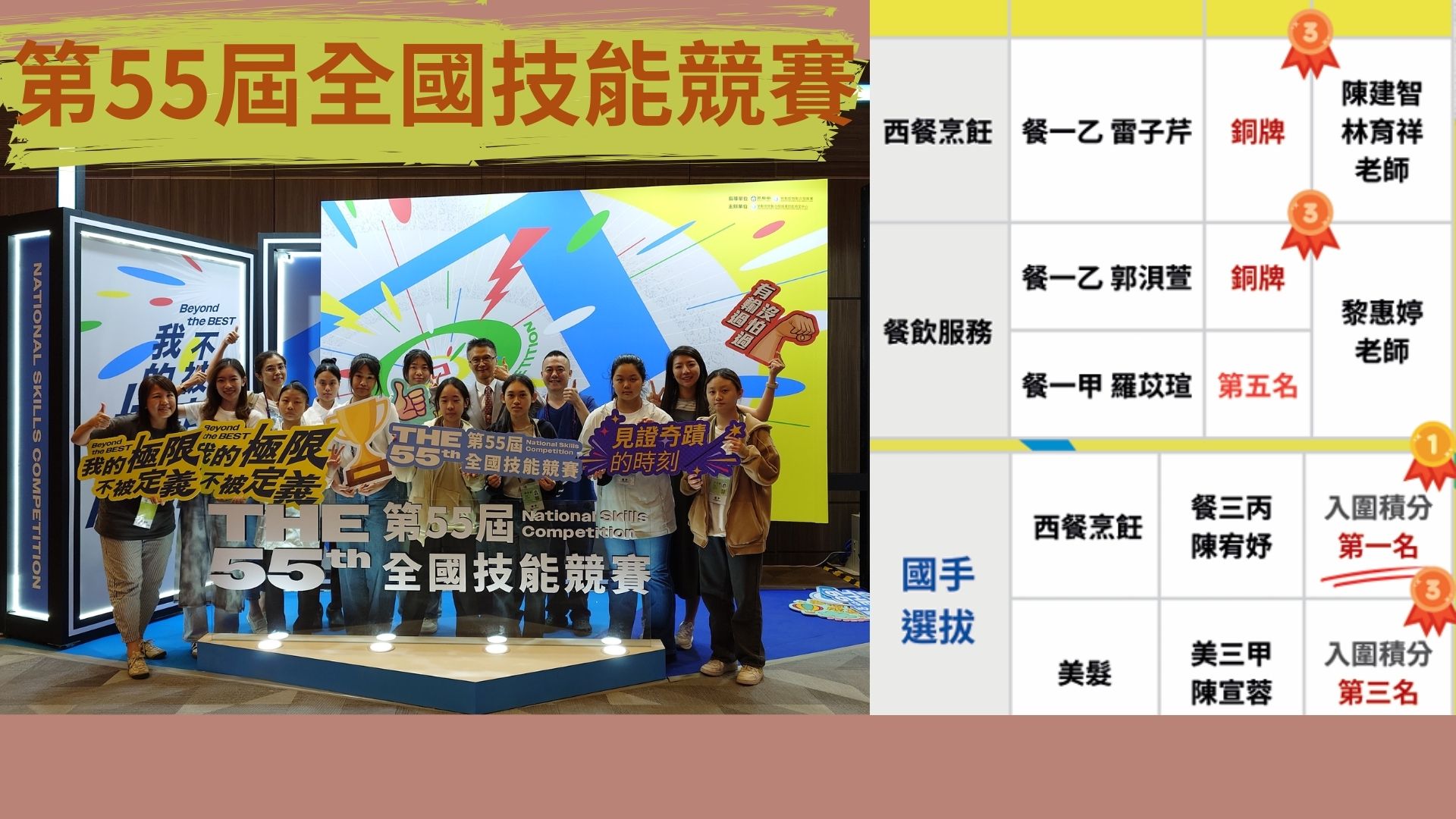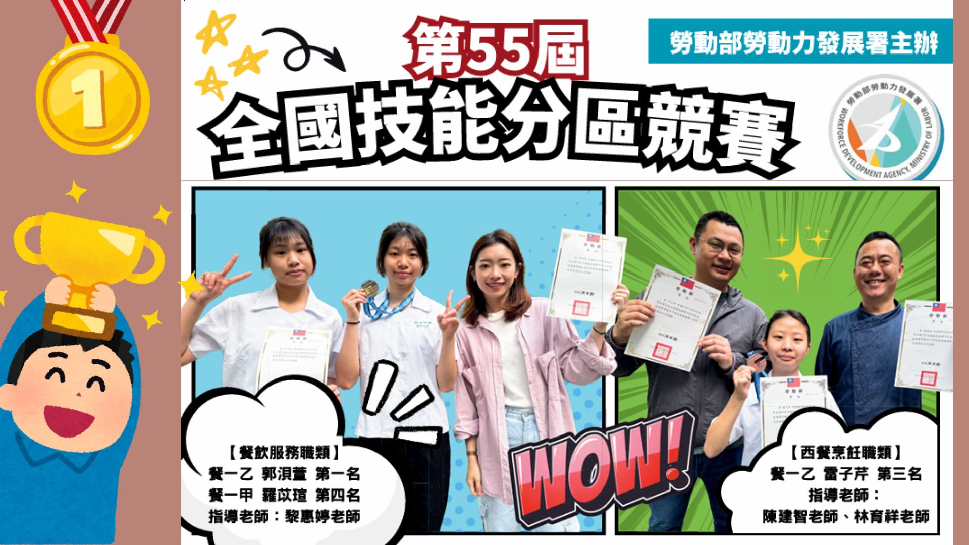 恭賀~本校第55屆全國技能競賽 榮獲 第三、五名